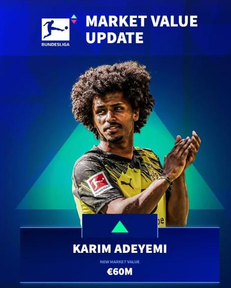 阿德耶米身价涨至6000万欧,德转:他本赛季开局不错且很稳定